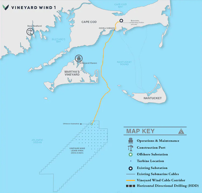 Map showing location of Vineyard Wind 1 offshore wind farm