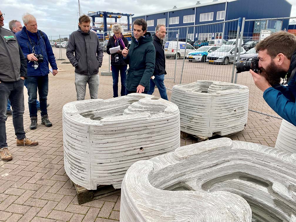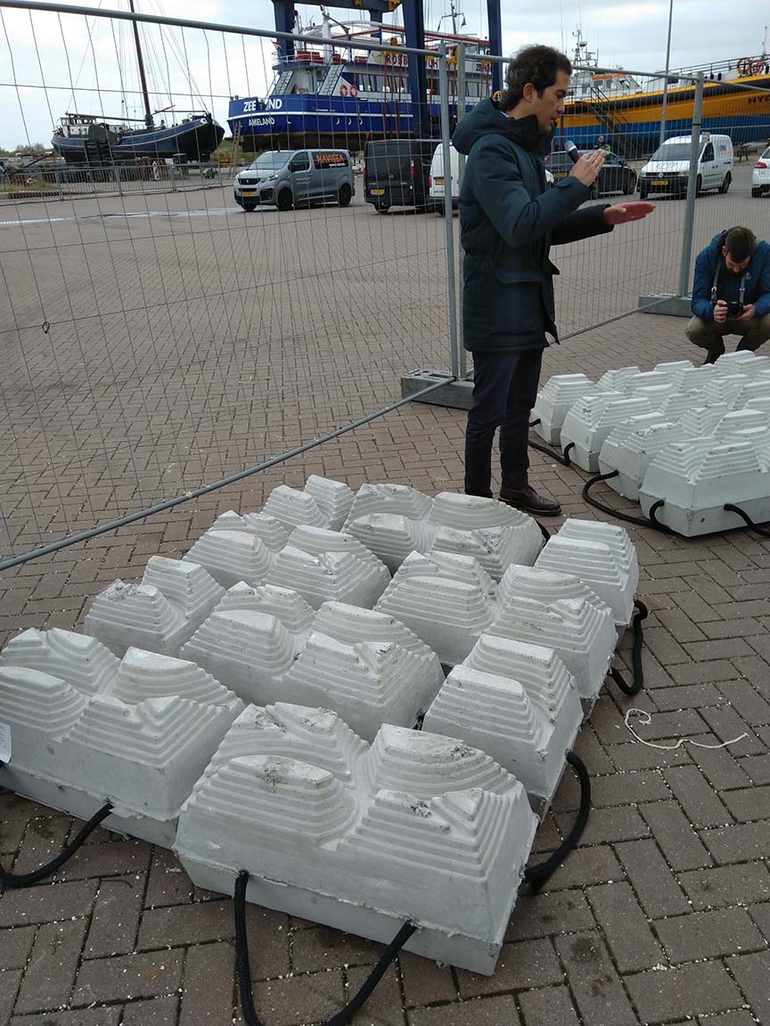 On Monday, November 8, a unique trial began in the Wadden Sea, on the Groningse Lauwersmeerdijk. Over the next three years, a pilot program will test how underwater nature at the foot of the dike can be best enriched. Ten different ecological technologies and artificial reef structures will be installed for the pilot, three of which are ECOncrete’s technologies. ECOncrete concrete armor blocks, tide pool armor, and articulated concrete block mattresses will be providing structural support for the dike’s riprap and toe, while serving a platform for biodiverse marine life to grow.