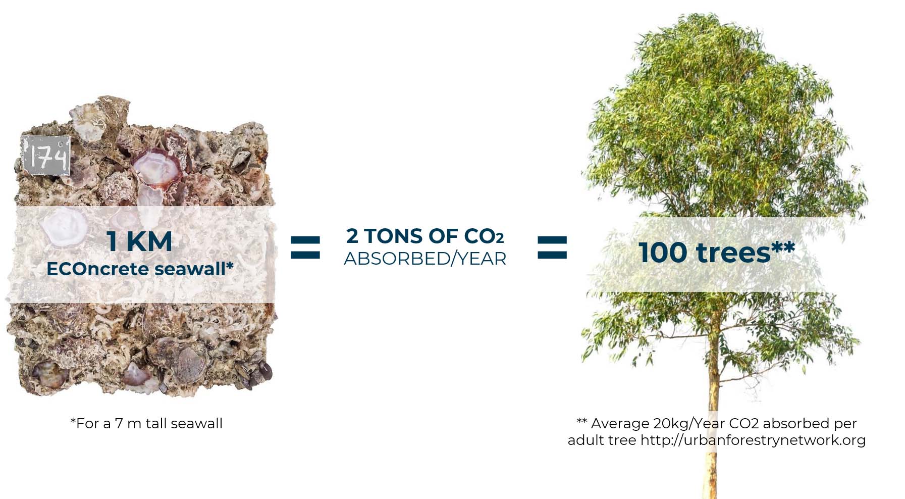 Concrete is the main construction material globally, accounting for over 70% of Coastal and Marine Infrastructure (CMI) such as ports, coastal defence structures and waterfronts. Standard Portland cement based concrete CMI support low biological diversity and are typically dominated by nuisance and invasive species. ECOncrete®’s bio-enhancing concrete products have a reduced carbon footprint compared to Standard Portland cement based concrete, due to a combination of proprietary admix integrating by-products and recycled materials, and unique ability to enhance biological process such as biocalcification and photosynthesis which facilitate CO2 assimilation.