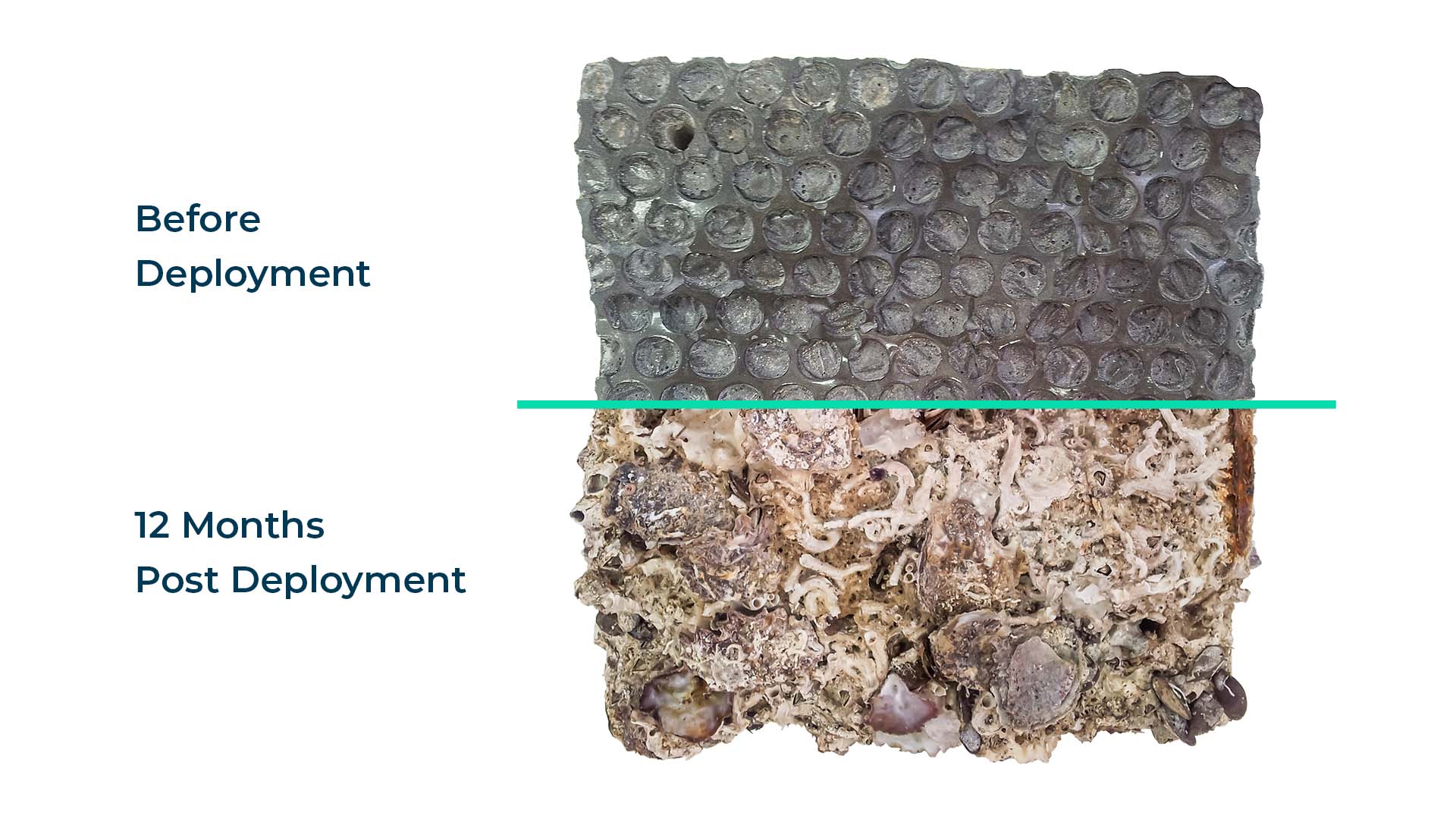 Sella and Perkol-Finkel[24] demonstrate that ECOncrete units enhance growth of engineering species such as oysters, serpulid worms, bryozoans and coralline algae significantly more than control Portland cement units. These engineering species (oysters, serpulid worms, barnacles and corals) deposit CaCO3 skeletons onto hard surfaces thus creating valuable habitat to various organisms[25] while also contributing to the structures’ strength, stability and durability[11].
