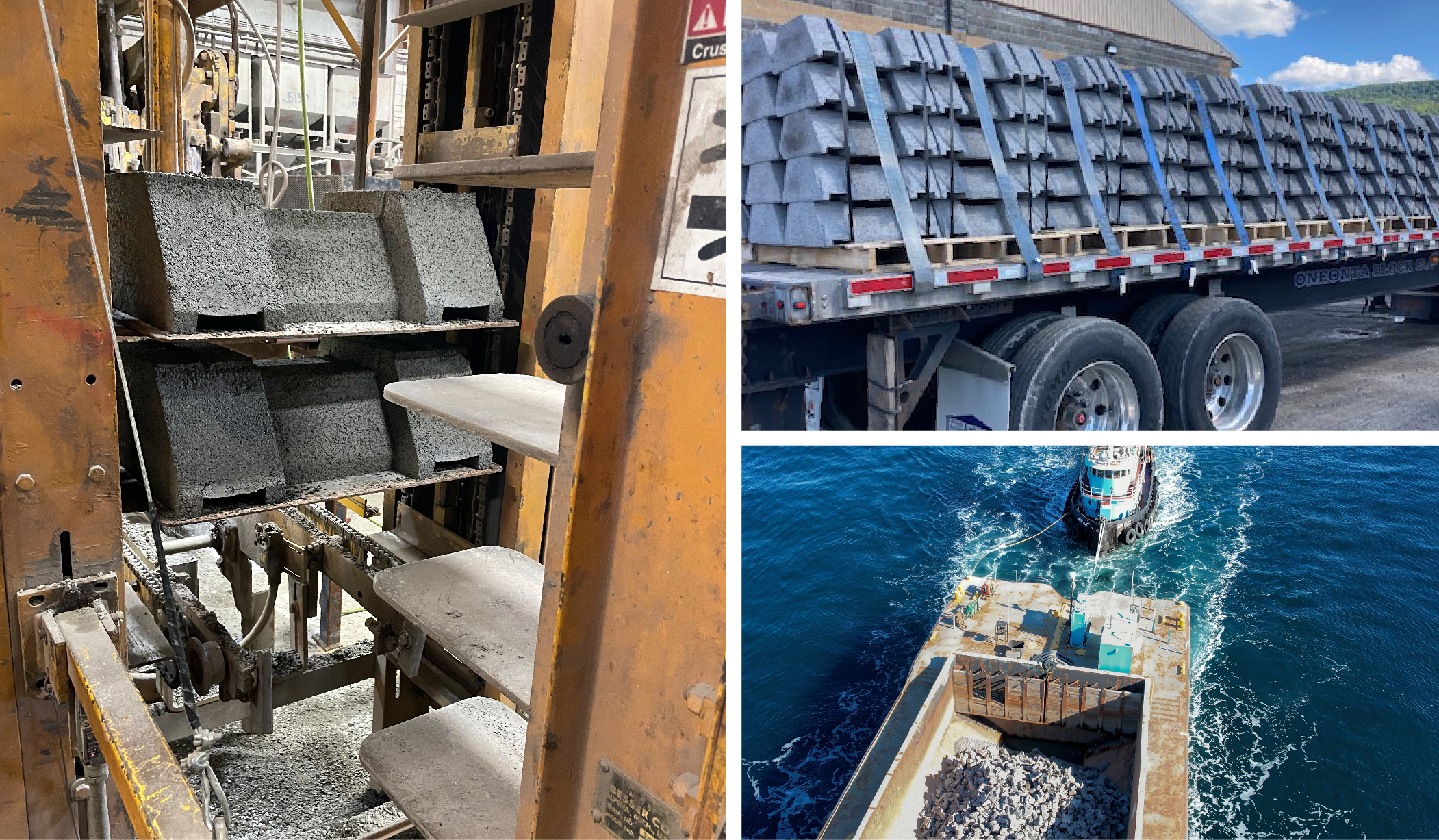 - ECOncrete Droplocks are manufactured on-site by local workforce. This creates investment into the local economy AND reduces the risks and costs associated with sourcing and transporting traditional rock material. Carbon capture and storage can be applied readily to further reduce the ecological footprint of the solution.