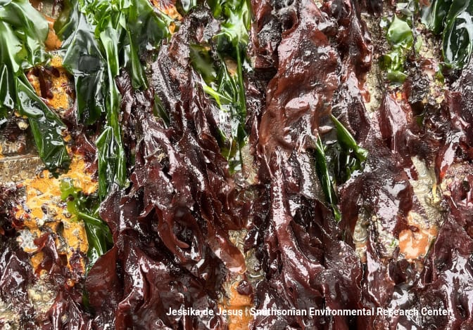 After two years of monitoring, SERC researchers observed thriving communities of native oysters, crabs, seaweed, and other marine life colonizing the specially designed seawall tiles. Preliminary findings indicate that these textured designs can significantly boost biodiversity and support native ecosystems in urban waterfront environments. (Image: J. Jesus, SERC)